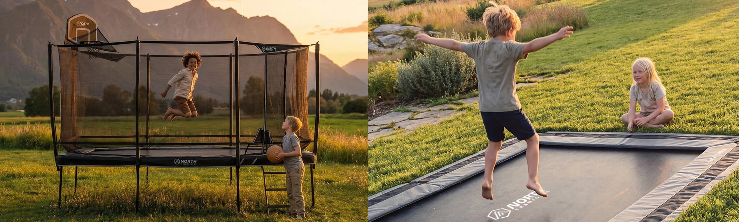 Vill du att studsmattan ska smälta in snyggt i trädgården? Då kan en nedgrävningsbar studsmatta vara valet för dig. Kolla in North In Ground!